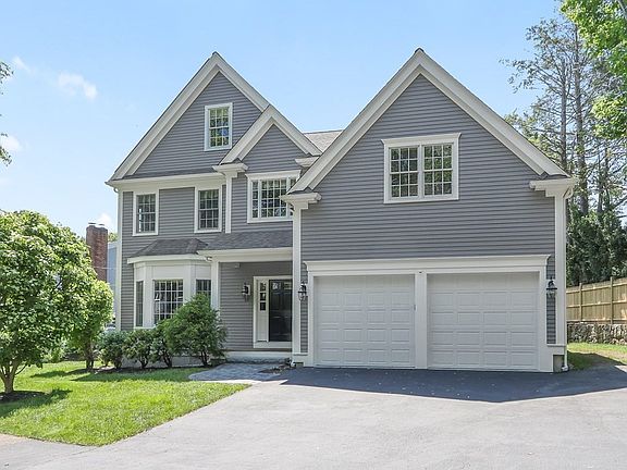 Welcome to this stunning 2011 colonial nestled on quiet side street right around the corner from Mitchell Elementary school! The first and only owners have lovingly maintained this home spread over 3 finished floors with 5 beds and 4.5 baths. 1st floor offers office, living and dining rooms with gorgeous woodwork, gourmet kitchen with cherry cabinets, island, spacious eating area, which opens to fireplaced familyroom with windows overlooking large level yard. Climb to 2nd floor to find private primary suite with custom walk-in closet, sitting room, and luxurious bath plus 3 other bedrooms all with walk-in closets. 3rd floor is ideal for guest/au pair with 5th bedroom, full bath, and additional rec room. Updates include natural gas furnace, solar panels, new fence, freshly painted exterior, new walkway, patio, garage door. Amazing location with a mile to train, Needham shops, and walking trails.1700+ sf bsmt with 9 ft ceilings and plumbed for bath offers future potential!