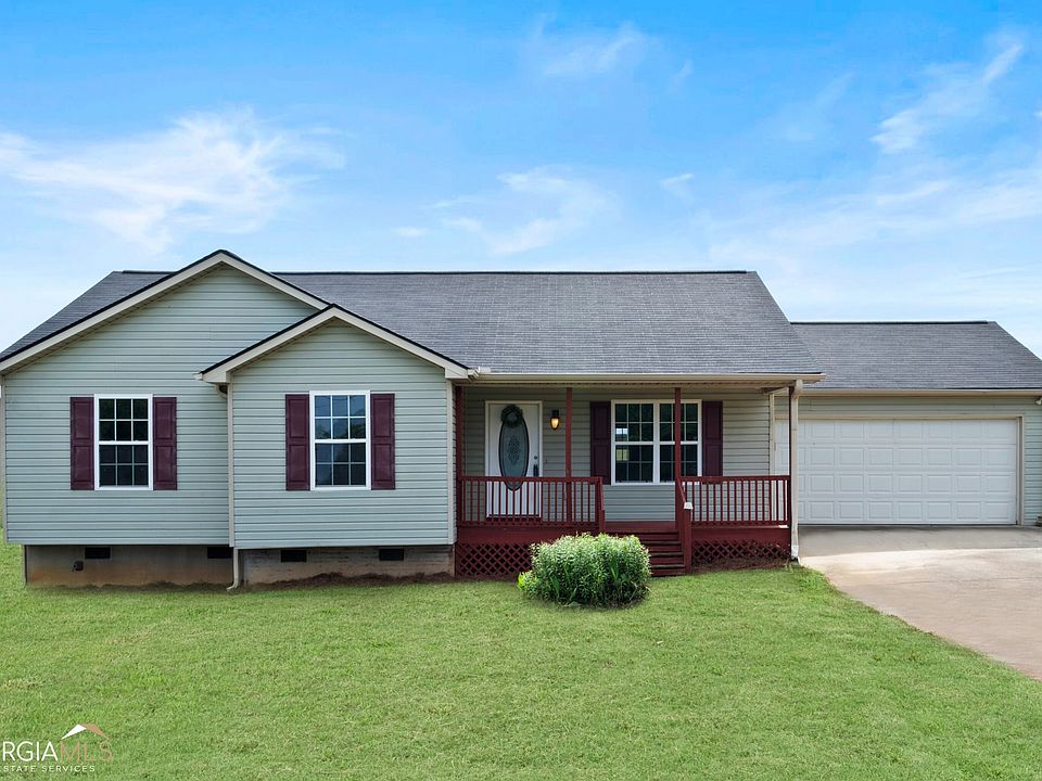 Looking for a Southern Living plan in Cartersville for under 300k? Unlock this 3-bedroom, 2-bathroom ranch-style home that's move-in ready. This hidden gem features new interior paint, an open concept living area, remaining appliances, hardwood floors, and tile throughout. The primary bathroom boasts a separate standing shower and a jetted tub for relaxation. This home is situated on over half an acre-level lot and features a front and back porch for your enjoyment and entertainment needs. Your new home is conveniently located near shopping and restaurants.