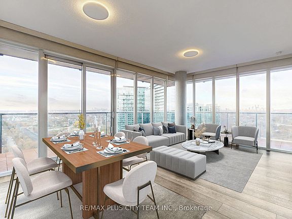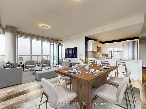 Welcome to The Collins, where Luxury Meets Lifestyle! This stunning 2-bedroom + den, 2-bathroom corner suite boasts over 1,200 sq. ft. of well-designed living space, including a rare 237 sq. ft. wraparound terrace ideal for outdoor dining, entertaining, or simply unwinding in the fresh air. Inside, the open-concept layout is bathed in natural light, with a spacious living and dining area (24' x 13'4") that flows seamlessly into a modern kitchen featuring a full-size island with breakfast bar seating, sleek cabinetry, and premium finishes. The split-bedroom floor plan ensures added privacy and comfort for both residents and guests. The primary bedroom offers a serene retreat with a walk-in closet and a spa-like 4-piece ensuite. The second bedroom is bright and generously sized, complete with large windows and a full closet. A versatile den provides the perfect space for a home office, reading nook, or creative studio. Elegant, functional, and filled with natural this exceptional suite at The Collins is the perfect place to call home. **Please note that the photos are virtually staged