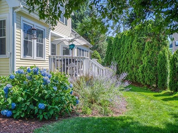 CHARMING CAPE with first floor master suite in desirable Phillips Common! This delightful home offers an open main level featuring white eat-in kitchen with stainless appliances, hardwood floors, dining room with exterior deck and vaulted-ceiling living room with skylights.The beautiful master suite showcases gleaming hardwood floors and offers both custom built-in cabinetry as well as a walk-in closet off the large two-room ensuite bathroom. Main level is perfectly completed with lovely three-season sunroom, tasteful half bath and mudroom/laundry off attached two-car garage. The second floor has three well-sized bedrooms and full bathroom with skylight. Finished lower level includes large carpeted family room, pantry and extra room for office or exercise space. This special property is nestled on a professionally landscaped lot and features two large decks off the side and back of the home. Phillips Common is supremely situated within North Andover near the Old Center and town common.