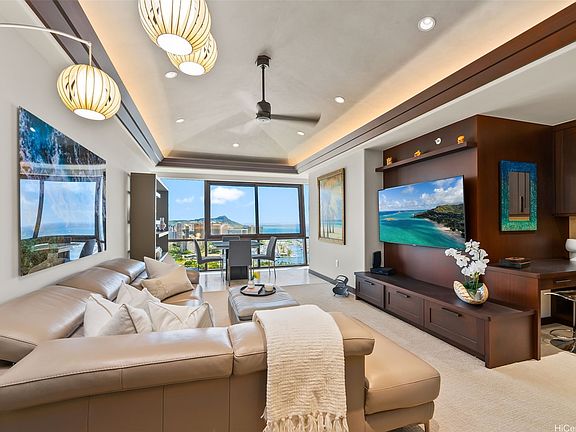 Experience luxury in this exquisitely renovated 2-bedroom, 2-bathroom residence perched on the 44th floor of the coveted Hawaiki Towers. Expansive floor-to-ceiling windows in living and bedrooms. This stunning home offers panoramic views of Magic Island, Ala Moana Beach Park, sunsets over Diamond Head, and the Koolau slopes.