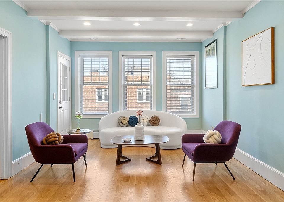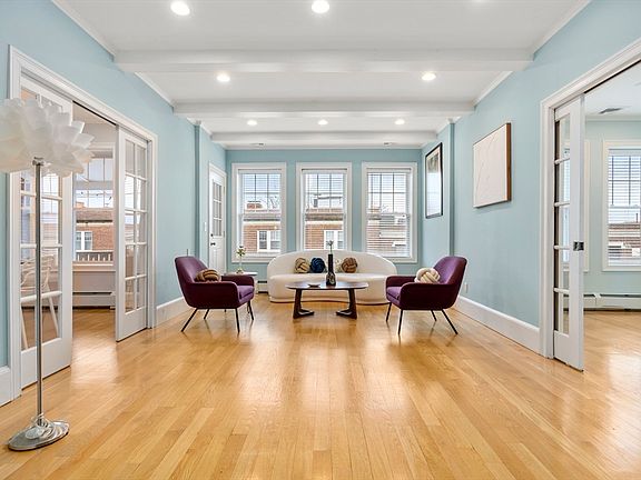 Prime Coolidge Corner location. This 4 bedroom, 2 full baths, floor-through, on the penthouse level. Located in a beautiful brick row house building on a coveted tree-lined street. Single-family alternative.The 4th bedroom office option. The entry foyer with a fireplace with a wood mantle leads to the living area and separate formal dining room. Updated kitchen with granite counters. Large windows with streaming sunlight throughout. High ceilings and gleaming light hardwood floors. Multiple French pocket doors for both privacy and light. Charm with modern amenities, Central Air, and in-unit full-capacity washer and dryer. Private balcony off the living room. Heat is separate and owner-controlled. The unit had an extensive renovation a few years ago. There is an assigned parking spot and additional storage. Pet friendly. Minutes to Public Library, grade school, Trader Joe's, shopping, T- C line, Longwood Medical Area, easy to downtown Boston, Fenway Park. 87 Walkability Score.