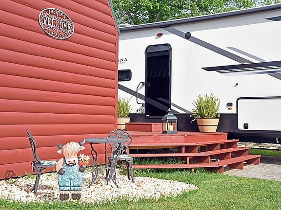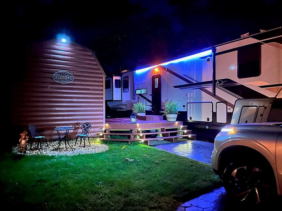 Welcome to your perfect getaway at the Crossing Creeks RV & Spa. Just bring your pajamas and toothbrush. TURN-KEY PROPERTY, Brand New Rv. Never had water in a toilet or sink, couches still have plastic on them. The RV is boasting numerous extra add-ons and features that have never been used! This pristine home is perfect for creating unforgettable memories in the mountains, but due to a job transfer, the family must part with their dream retreat they were just about ready to enjoy. Let's not forget to mention the lot is sitting on 45 ft of Creek Front. This tranquil side as you will find waters rushing over the stones, while you relax by the firepit and watch for the cows on the other side of the creek.The lot has been staked by a licensed surveyor so you know exactly where your property lines are. Either enjoy the large green space or add an eye catching pavillion to go along with the RV and Shed this property has. RV bells & whistles to follow but before take note to the shed; Amish made and plenty of outlets including the floor, Nice flooring has been install. Owners planned to cut a window out for the mtn views from where the building has been meticulously positioned. The shed is useful for an office, playroom, or storage. Step outside onto the well-designed deck that seamlessly connects the two structures. The deck allows an additional spot to relax, entertain or meet and greet neighbors that walk by. Enjoy the Perks of the RV; built-in vacuum system, Residential Refrigerator, Motion sensor lights for closets & stairs, all furnishings such as bedding for the King Sized bed, towels, kitchen tools and dishes, etc - can we included, if desired 2 large propane tanks, electric water heater, Plumbing has never been used by owner, Purchased brand new, August 2024. Don't miss this rare opportunity to own a brand-new RV that has an inviting layout w/natural lighting throughout. Your adventures in the great Mountain community of Blairsville are calling you!