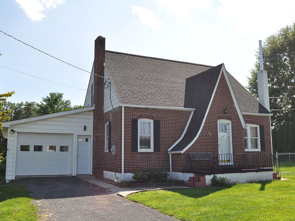 This sweet little cape packs quite a kick! Not only is it a beautiful and affordable place to live, it sits on a huge, fenced corner lot and is only a minute or two from Route 322 on/off ramps. Also, it has, contained within its solid brick walls, its very own sports bar! Watch your favorite sports while you're nestled within the confines of your own pub! 3 big bedrooms, 1 full bath, living room, dining and kitchen, oil hot air heat, coal stove in basement, pellet stove in pub. This is a practical place to live and also a lot of fun to live in. See it today and make it yours!
