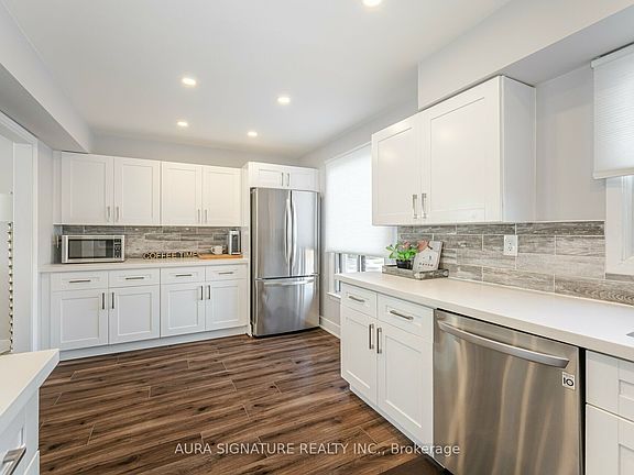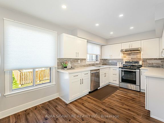 This Newly Renovated Open Concept Executive Townhome With Exceptional Finishes, This 3 bedroom 3 bath Includes a Custom Kitchen With S/S Appliances And Servery/Coffee Station Opens Up Tp A Formal Dining Room Over Looking The Family Room Boasting Floor To Ceiling Windows Flooding The Home With Natural Light Which Leads Out To The Large Private Rear Yard Patio, The Home Features A Finished Lower Level Including A Rec Room , Bath And Finished Laundry Area, The Resort style home has a swimming pool on site for easy summer living. Located Steps to Downtown Woodbridge Shops .