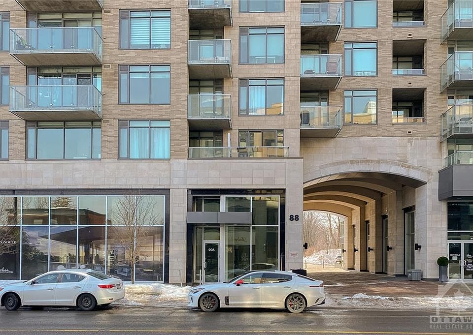 A chic one bedroom, one bathroom plus den condo at 88 Richmond Road in a sought-after community in the heart of Westboro. This modern dwelling boasts hardwood & ceramic flooring in the ultimate open-concept setting. Kitchen includes quality stainless steel appliances, quartz countertops, pot lights and an island - perfect for cooking & dining. This peaceful condo also includes a cozy den and in-suite laundry. Large windows allow natural light to pour into the living space. Bedroom offers reprieve from the day in an intimate setting. The building amenities offer an exercise studio, theatre, party room, an expansive rooftop terrace with community barbecues, storage locker, bike room and a space to wash your K9 friends. Check it out today, this unit will not last long... 24 hours irrevocable on all offers.