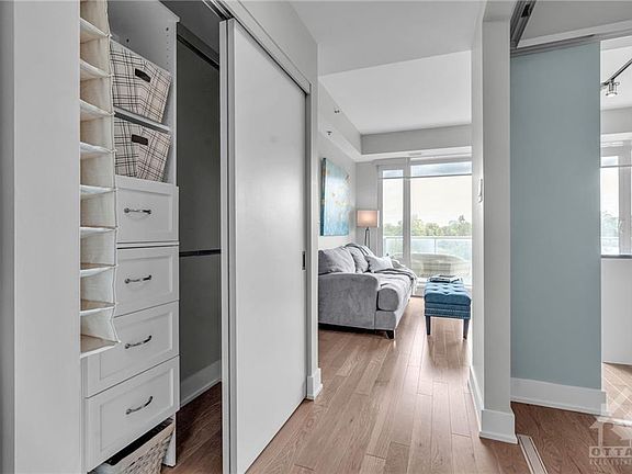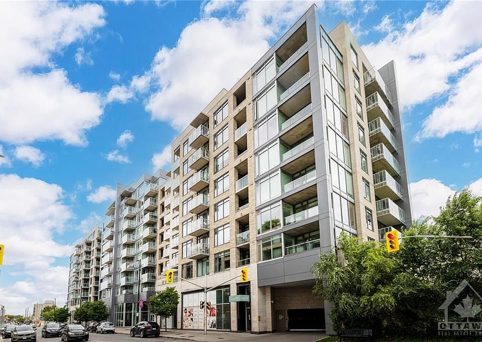 Welcome to this sleek & modern Qwest condo in highly sought out Westboro. The meticulously maintained 1 bedroom condo plus den offers hardwood floors throughout, open concept living / kitchen area with large island, stainless appliances, quartz countertops, in-suite laundry and private balcony with great views. Floor to ceiling south facing windows (on the quiet side of the building) let in tons of natural light. The bedroom has sliding doors opening up the room on two sides. The additional den, currently used as a tv room, is also ideal for professionals working from home or overnight guests. Also included is a convenient 5th floor storage locker just down the hall (#45) and one underground parking spot (P1-21). Building amenities include rooftop terrace with BBQs and fantastic views of the city, fitness room, theatre and party rooms. Located in a truly walking neighbourhood... easy access to shops, restaurants, cafes, public transit, cycling paths, Westboro beach and so much more.
