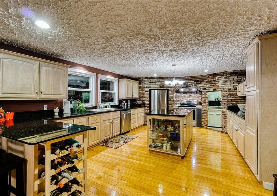 Spacious Raised Ranch With Lots of Charm! This Brick Facade With Decorative Pillars Welcomes You Into This Lovely Home! Upstairs Includes An Open Floor Plan With Cathedral Ceilings, Hardwood Flooring, A Stone Fireplace And Walkout To Raised Deck! The Kitchen Features Stainless Steel Appliances, Granite Counter Tops, Prep Island, Tons of Storage! Master Bed Has On Suite Bath With Jacuzzi Tub, Stand Up Shower, And Double Closets! Additional Large Bedroom And A Half Bath With Laundry Complete The Upper Level!The Finished Lower Level Includes A Kitchen And Living Room With Brick Fireplace, A Full Bath With 2nd Laundry. Walk Out to Fenced-In In-ground Pool Area! Call Today For A Private Showing!