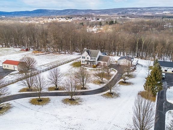 Exceptional views and custom craftsmanship define this beautifully maintained Wantage Colonial. Sitting on over two scenic acres, this 10-room residence boasts an airy, open layout flooded with natural light. Highlights include a grand master suite with an oversized walk-in closet, a versatile finished basement perfect for a home gym or media room, and a sunken family room designed for relaxing by the fire. A large outbuilding with a heated floor is perfect for storage !! There is an additional storage shed and a chicken coop! Enjoy morning coffee on the open front porch or host sunset dinners on the expansive back deck. Ideally located for commuters and outdoor enthusiasts alike, this home offers thermal windows for efficiency, central air for comfort, and plenty of room to grow.