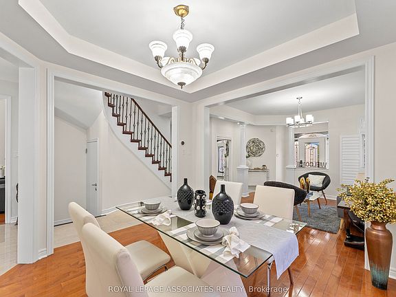 88 Showboat Crescent offers a refined blend of elegance and comfort. Nestled on a quiet, family-friendly street surrounded by parks and scenic trails, this beautifully updated 4+2 bedroom, 5-bathroom detached home showcases approximately 4,025 sq. ft. of impeccably finished living space The main floor office is perfect for those working from the comfort of home. Elegant formal living and dining rooms, a cozy family room with a gas fireplace and soaring ceilings, and a gourmet kitchen featuring quartz countertops, a stylish backsplash, stainless steel appliances, and a spacious breakfast area with a walkout to the garden create an inviting atmosphere. The main level boasts 9-foot smooth ceilings, hardwood flooring, California shutters, pot lights, and modern light fixtures throughout. A striking hardwood spiral staircase with wrought iron pickets leads to the upper level, which features four generously sized bedrooms including one with semi-ensuite access while the primary suite serves as a private retreat, complete with his and hers closets and a spa-inspired 4-piece ensuite with a soaker tub and separate shower. The finished legal basement apartment with a separate entrance includes two more bedrooms, a full bath, a fully equipped kitchen with stainless steel appliances, separate laundry, and ample storage space ideal for extended family or rental income. Additional highlights include upgraded lighting fixtures throughout, a 200-amp electrical panel, freshly painted interiors, and a new roof. Set on a private, fully fenced ravine lot with stamped concrete, exterior pot lights, and beautiful landscaping, this home offers easy access to major highways including the410, 407 and 401, Shopping, schools, a nearby hospital, and transit options are all just minutes away, making this a perfect location for families or professionals alike.