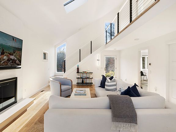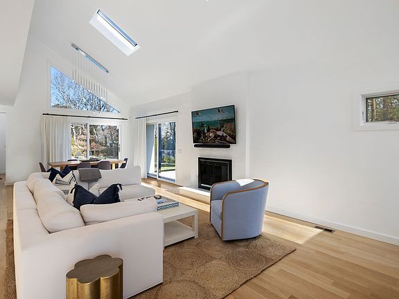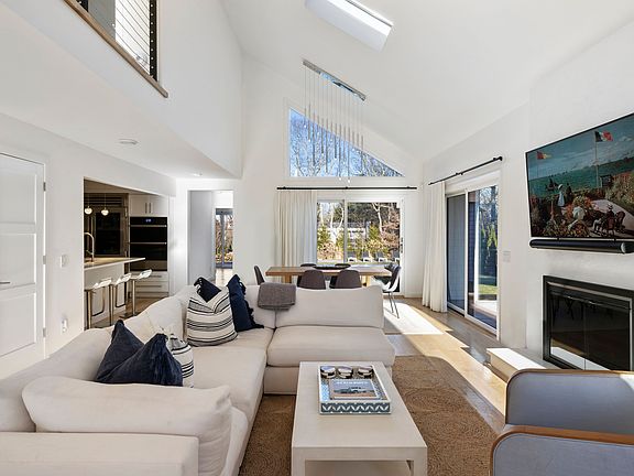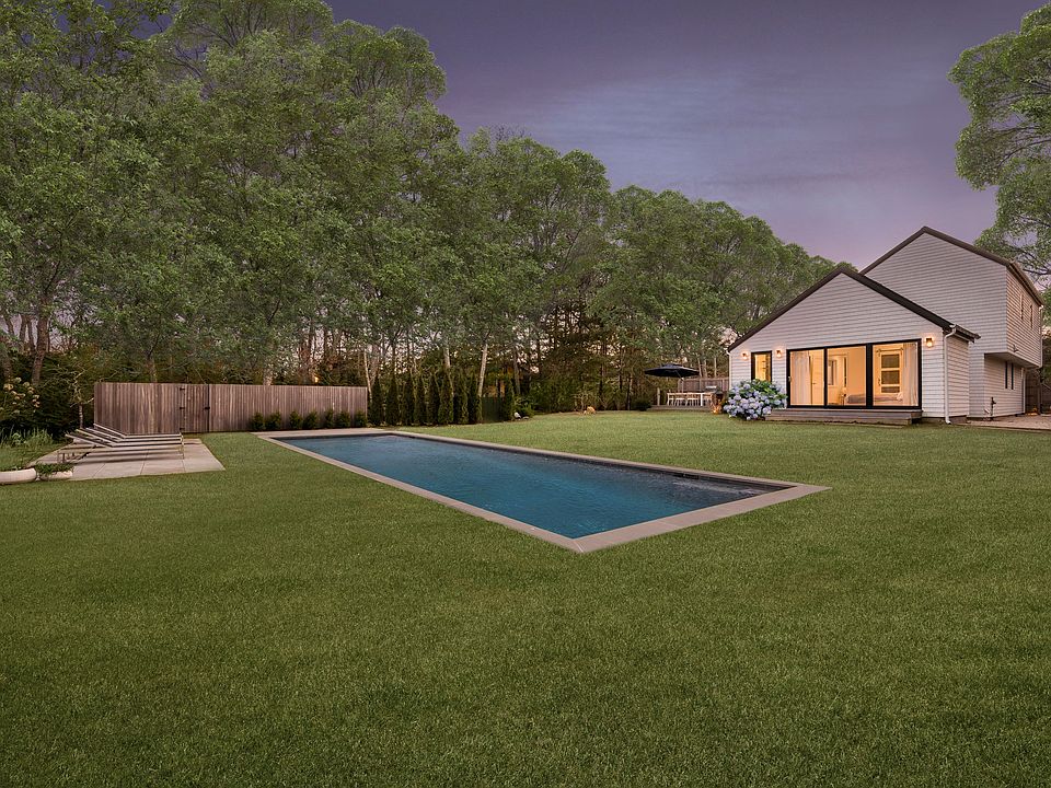 This newly completed 4-bedroom home in the coveted Hampton Waters community is move-in ready, offering a perfect blend of modern luxury and timeless charm. The main floor features an open-concept living room with soaring ceilings and a wood-burning fireplace, creating a warm and inviting atmosphere. Adjacent to the living space, the dining area flows seamlessly into a chef's kitchen equipped with a Sub-Zero refrigerator and a Wolf cooktop, designed for both style and functionality. The primary suite is a private retreat, boasting a spacious walk-in closet and direct access to the expansive mahogany deck. A well-appointed guest suite and a stylish half bath complete the first floor. Upstairs, two additional en-suite bedrooms are bathed in natural light, each featuring elegant skylight details. Throughout the home, 4-inch-wide white oak flooring adds warmth and sophistication. Outside, the 14' x 50' heated Gunite pool, complete with a built-in lounge bench, is surrounded by bluestone and mahogany decking, creating a serene outdoor oasis. Set within the exclusive Hampton Waters Community Association, this gated property offers access to a private beach and a boat launch on Three Mile Harbor. The extensive, thoughtfully landscaped grounds provide exceptional privacy, making this an unparalleled opportunity to experience Hamptons living at its finest.
