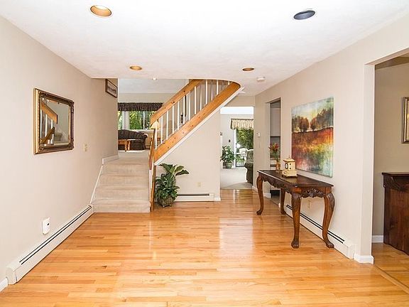 Gorgeous 4 Bed+2.5 Bath New York Colonial, located on a wonderfully private lot in one of Holliston's most popular neighborhoods. Welcome your guests into the spacious foyer w/ hardwood floors. Large Cathedral Ceiling living room has hardwood floors under carpet. Eat-in Kitchen w/ tiled floor opens to your formal dining room that offers hardwoods floors and a picture window. Family room has a corner fireplace with a tiled hearth and is flooded with natural light from the skylight and glass slider, which leads you to a brand NEW patio and your very private and wooded backyard. Upstairs boasts 4 spacious bedrooms with hardwood floors under the carpet. Master Bedroom w/ full bath and 2 closets. All of this PLUS 1 car attached garage, 1st floor laundry, Central A/C and beautiful curb appeal in this fantastic neighborhood location. Top Ranked School System that offers Traditional, Montessori or French Immersion Elementary Programs*Easy Commute to public transportation*20 mi to Boston