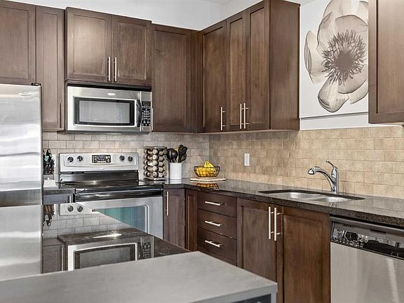 Bright and modernOpen-concept layoutStylish kitchenStainless steel appliancesDark cabinetryGranite countertopsCozy fireplace