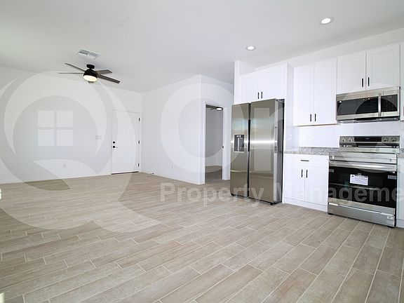1,079 SQ FT! 3 bed, 2 bath duplex in Vail with a charming single story floor plan. Open floor plan, fitted with contemporary stainless steel appliances and elegant tile flooring throughout. Convenient laundry closet with washer/dryer hookups and stylish white cabinetry complemented by granite countertops. Spacious great room! Spacious primary bedroom with ensuite bath. Two nicely sized secondary bedrooms with ample closet space. Ceiling fans throughout! Convenient Vail location, close to shopping, schools, and restaurants.