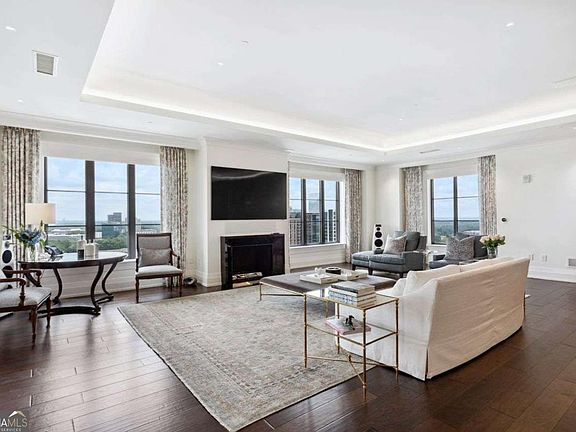 AMAZING PRICE - This is a GREAT BUY - Sellers are seriously motivated! Prepare to be wowed when you step from the PRIVATE ELEVATOR into the welcoming foyer of this NEWLY RENOVATED, stunning abode with unobstructed, unparalleled, spectacular views. Boasting 11' ceilings throughout, this sophisticated unit offers the finest in finishes and an airy open floor plan. The Living/Great Room has cove lighting, an inviting fireplace and is open to a gracious size Dining Area with wonderful walls to showcase art. It flows to the state of the art Kitchen from Artistic Cabinetry and Design with quartzite counters, island with seating, SubZero fridge, paneled cabinet appliances, Dacor microwave, Wolf range (6 gas burners and grill), Wolf double wall ovens, Bosch dishwasher, stainless deep sink, lots of pullout racks in cabinets and a breathtaking view from Kitchen window, all opening up to the wonderful covered Balcony with fireplace, TV and outdoor gas grill. The stylish wet bar boasts stone counters, 2 SubZero refrigerated drawers, beverage/wine fridge, ice maker and sink. The 2nd Bedroom features a cleverly designed Murphy Bed, plenty of storage, drawers, hanging space, TV and, when not in use for sleeping, it's a handsome Office or Den. The adjoining marble Bathroom features a beautiful vanity and a large walk-in shower with built-in bench. The elegant oversized Primary Suite features a gorgeous marble Bathroom with double vanities, soaking tub, large walk-in shower with bench, private Toto commode, large linen closet and a massive custom closet with huge island, cabinets, dressing area and plenty of hanging and shoe space. It leads into a tucked away private office. The large Laundry Room has marble counters, sink, cabinetry and accommodates full size appliances. Finally, the secluded back Service room with another private elevator, (this is where the Concierge service discretely delivers your dry cleaning and packages!) has a great Pantry, loads of cabinets with storage and drawers, AV and Crestron Automation equipment. Other features: automated blinds and drapes, Cat 6 throughout, Meridian Sound system, new HVACs, humidifier and more. There are gorgeous wide plank hardwood floors throughout all living/sleeping areas, a COVETED PRIVATE, DEEDED 2 CAR GARAGE (only 26!), large climate controlled STORAGE ROOM, access to world-class amenities of the pool, full service spa, fitness center, restaurants - the fabulous Atlas, the St. Regis Bar and the Garden Room - 24 hour room service, and a dedicated award winning concierge service. Atlanta's finest shopping and dining district is just steps away. Living at the St. Regis is as good as it gets for those who deserve nothing but the best. This residence is the epitome of luxury and exceptional living, offering space, floor to ceiling windows, views from all rooms and an enviable lifestyle waiting to make it yours.