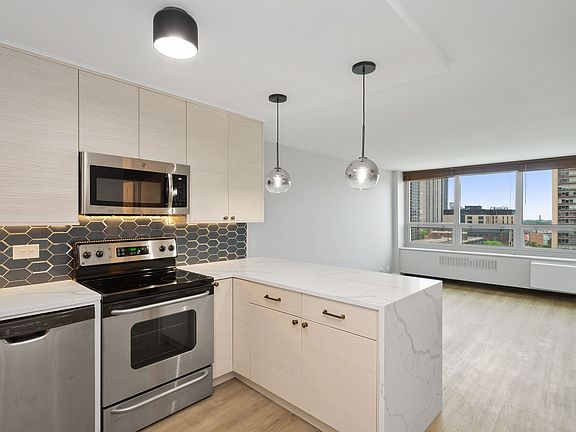 The building offers a doorman from 4 PM to midnight and on-site management Monday through Friday. Conveniently located near the lakefront, Red Line, and multiple bus routes.