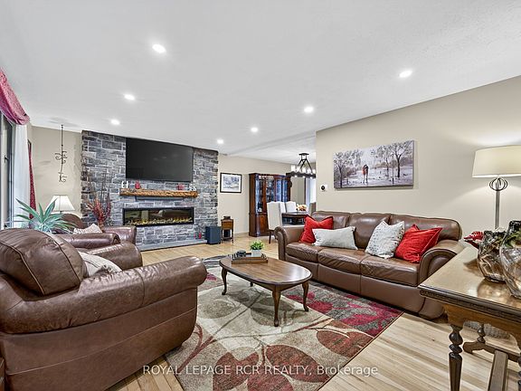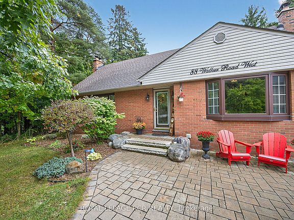 Escape to a private 1 acre paradise in the heart of Caledon East. It isn't just a home; it's a lifestyle, offering a magical rural retreat with the convenience of being steps away from everything the village has to offer. Imagine your children running, swimming & exploring the wooded trails, discovering the enchanting fire pit glade & splashing in the inground pool without leaving the comfort of your backyard. The tiered deck is the perfect spot for summer bbqs & peaceful mornings surrounded by nature. Step inside this charming 5-bedroom, 3-bathroom bungaloft and feel the timeless warmth of the hardwood maple flooring that flows throughout the house. The layout is perfect for large or growing families, or those seeking main-floor living. The kitchen is both functional & inviting, with newer appliances and timeless hardwood cabinetry. With a walkout to the back deck, it's easy to move between indoor & outdoor dining. The adjoining dining room creates a seamless flow for entertaining.The spacious living room is the heart of the home, centered around a gorgeous electric fireplace that creates a relaxing atmosphere. A separate main floor library offers a quiet escape for reading or work. The main floor primary bedroom provides a private sanctuary, complete with a beautifully updated 3-piece semi-ensuite with heated floors, making this a home you can comfortably grow old in. Upstairs, you'll find two more large bedrooms with hardwood flooring & a 5-piece bathroom with heated floors. The finished basement expands your living space even further, featuring two additional bedrooms ideal for a large family, overnight guests, or a home office. The large recreation room ensures there's plenty of space for everyone to relax & play.This property is truly one of a kind. It's a rare opportunity to find a lot of this size and caliber, blending the serene escape of the country with the unbeatable convenience of town life. Discover this irreplaceable haven where memories are made.