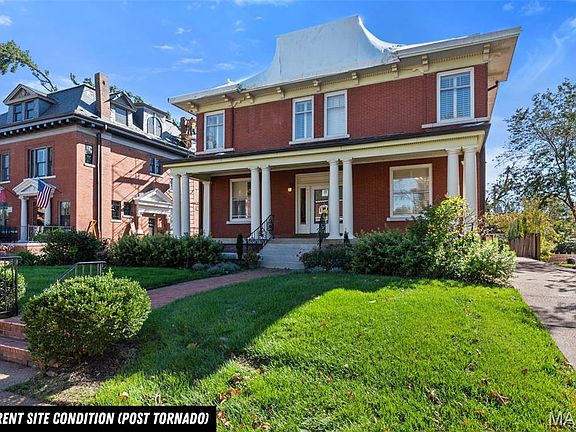 Circa 1905: Situated at the quiet end of a gated private street in the Central West End's DeBaliviere Place neighborhood is this gorgeous 6 bedroom, 3.5 bathroom Georgian style manse that has been thoughtfully updated, lovingly maintained, and is ready for new owners — Welcome to 88 Waterman Place! Built following the 1904 World's Fair on a gorgeous tree-lined street of 20+ homes, this stately 3-story brick home is comfortable yet elegant, and fits today's modern needs including things like updated kitchen & bathrooms, main floor laundry, primary bedroom w/attached pvt bathroom, zoned central AC/heat, & more. Fantastic floor plan layout inside, and extremely solid / square / straight! Gorgeous grounds & outdoor spaces (covered front porch, rear deck & sep paver patio). Plus, this is one of the few homes on the block w/a 2-car garage w/street entry & drive-way! Walking distance to neighborhood cafes and restaurants, Forest Park, Wash U, CWE & more. A must see home! NOTE: this home has suffered damage in the May 2025 tornado and is being sold AS IS at this deeply reduced price. Please see disclosures for additional information.