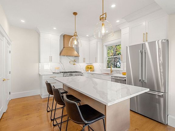 From the 1900s to 2025, this reimagined townhouse blends historic charm with modern luxury in the heart of Portsmouth. The entry welcomes you with 9.5' ceilings, back-lit coffered ceilings, and restored wide pine flooring. The open kitchen and dining area feature Thermador appliances, Calacatta Grigio Quartz, a full stone backsplash, and brass accents. Enjoy a cozy breakfast nook, a built-in mudroom, and a 20x20 private patio. The second floor offers three bedrooms and a dedicated office, while the top-floor primary suite features a walk-in closet, spa-like bath, and in-unit laundry. Fully renovated with new electrical, plumbing, insulation, and extensive soundproofing—plus rare basement storage. Located in the desirable Little Harbor School District, walkable to downtown shops, dining, and the waterfront, with off-street parking and easy access to major routes. Agent interest.
