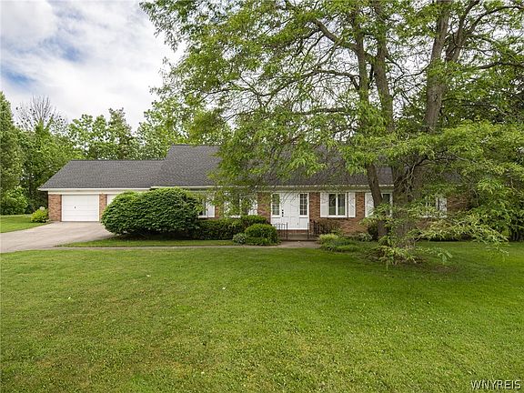 An all brick home in Alden School District on a private 2.2 acre lot, set back from the road with a beautiful forest and hill to rear. Built by loving father who was a mason by trade and occupied by the same family since. The versatility of this home will suit all of your needs now and in the future, including rough plumbed for in law suite. Design features that are original to the house were decades ahead of its time, with clever innovation such as walk in closet and FIRST FLOOR PRIMARY SUITE. Spacious mudroom/FIRST FLOOR laundry room with half bath is conveniently located off the covered patio which connects the garage. The immaculate & solid condition of the home must be experienced in person. Great room with remarkable raised fireplace hearth bench and large picture windows. Kitchen supports island! Dining room has beautiful built ins. Upstairs is a full bath and 2 bedrooms plus a loft. Loft could be used as a 4th bedroom and additionally there is the unfinished 2nd floor attic which yields so much more potential. Basement ceiling height of new build standards. Whether you are considering buying or building, this one is a must see! OPEN HOUSE Sun June 9th @ 2pm-4pm.