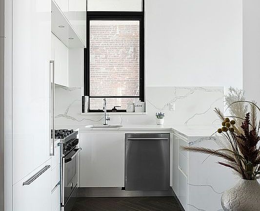 Welcome to Residence 3C at Element 88, a luxurious haven in the heart of Williamsburg. This stunning 2-bedroom, 2-bathroom home offers soaring ceilings throughout and double pane noise insulating windows, ensuring a serene living environment. The spacious living room easily accommodates a small dining table and lounge area, perfect for both entertaining and relaxation.