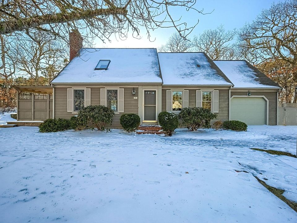 This lovely property is perfectly situated on a well-maintained, low-maintenance corner lot. It offers deeded beach rights to Pleasant Bay within a centrally located neighborhood that can not be beaten. The soaring cathedral ceiling and stately fireplace offer a beautiful greeting as you enter the home. The dining, kitchen, living area is filled with sunlight throughout the day thanks to a skylight a bow window and a set of sliding patio doors. This home features a first-floor bedroom, with sliding french doors, first-floor laundry, and gorgeous hardwood floors throughout. The two upstairs bedrooms offer large closets, new carpets, and a shared full bath. Updates include fresh paint, new carpets, new furnace in 2019. The outdoor features a small fenced area, a sunny deck, and a private outdoor shower.This sought-after neighborhood offers quick access to Chatham, Orleans, and Harwich. Just moments to Pleasant Bay, The Wequassett Resort, and Cape Cod National Golf Club.