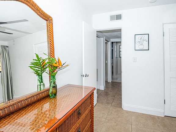 All windows have shades/drapery and new screens so fresh beach air flows through the house. Home includes sunny Florida room for extra living space. Covered front porch catches ocean breezes.