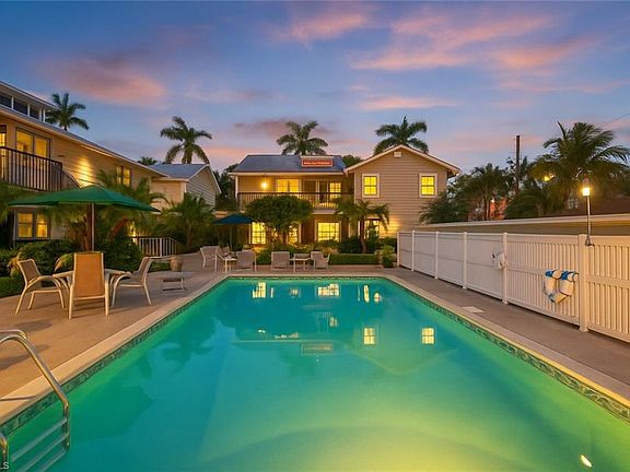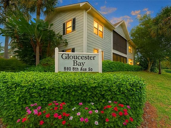 Welcome to Gloucester Bay – This beautifully updated and spacious 3-bedroom, 2-bathroom end-unit is not only ideally located just steps from vibrant downtown Naples and the serene oasis of Cambier Park, but it is also the lowest-priced 3-bedroom residence available in all of downtown Naples—making it an incredible opportunity for both homeowners and investors. One of the community’s most unique advantages is its elevated grounds, where the Units sustained NO hurricane damage through the last three major storms. Inside, you’ll find soaring vaulted ceilings, Abundant Natural light, plantation shutters, crown molding, generously sized rooms, and custom finishes that elevate the open, airy floor plan. The kitchen shines with granite countertops, stainless steel appliances, and abundant cabinetry, while the inviting living spaces flow seamlessly to the enclosed Florida room—complete with air conditioning for year-round enjoyment. Step outside to the large covered deck, where Sparkling pool views & Lush landscaping create the perfect backdrop for morning coffee or evening cocktails. This intimate, low-density community of just six units ensures privacy while still fostering a warm neighborhood feel. The resort-style pool, framed by lush tropical landscaping and featuring a brand-new heater, offers the ideal spot to cool off or relax in the sun. The location is unmatched—walk to Fifth Avenue South’s boutique shopping, world-class dining, and cultural events, or cross the street to enjoy Cambier Park’s tennis courts, playgrounds, and the Norris Center. A nearby boat launch provides quick access to Naples Bay, and the white sandy beaches are just a short bike ride away. Additional highlights include covered parking with plenty of guest spaces, a dedicated in-unit laundry room, generous storage, and a newer roof. Rentals are allowed with a 30-day minimum, offering excellent seasonal or investment potential. This condo combines location, lifestyle, and unmatched value—a rare chance to own the most affordable 3-bedroom residence in downtown Naples with hurricane-safe peace of mind.