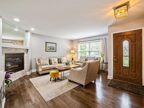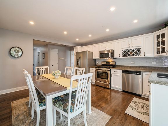 Ranch Style Townhouse 3 bed, 2 bath, eat-in kitchen, stainless steel appliances included. 2 car garage. Beautiful hardwood floors throughout. You are sure to enjoy the beauty of mature woods in a fenced-in backyard with a brick patio. Primary Bedroom features a custom-built walk in closet. Close to Centennial Park, Future Train Station to Chicago, Shopping, Low Taxes! NO HOA fees. 13 month home warranty provided!