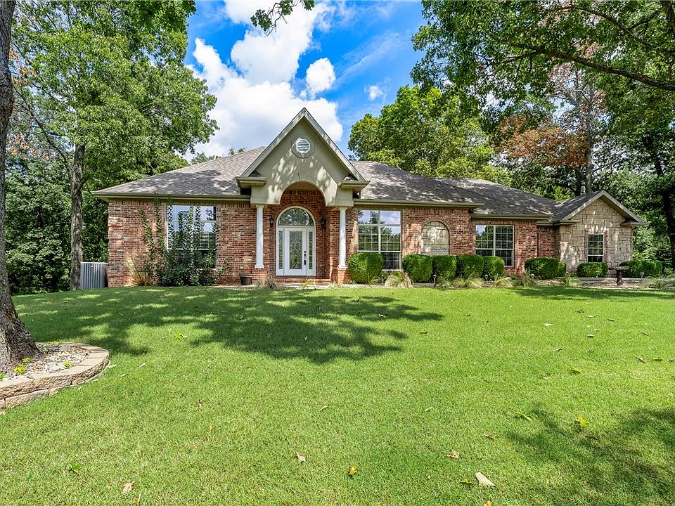 This immaculately maintained all brick home is so private yet conveniently located. It is just what so many families say they are looking for. 15 minutes to Rogers, Bentonville, and Beaver lake. The Sugar Creek golf course is almost in your front yard. Enjoy wildlife all around. Other great amenities in this home include the beautiful coiffered ceilings in the living room, custom cabinetry throughout including the builtins and the 27’ deep epoxy floored 3 car garage, the gas HVAC system recently updated in 2022 and the new roof in 2020 as well as the stainless kitchen appliance package.