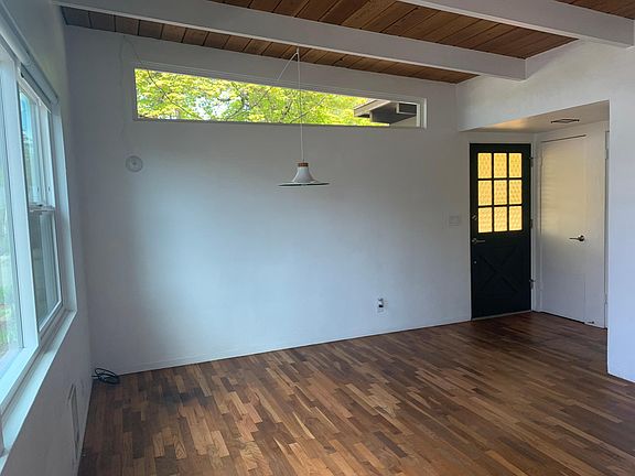 Featuring open beamed fir ceilings; updated windows, electrical, and heating; and a fully remodeled kitchen and bath, this property has stainless steel appliances, in-unit compact washer/dryer, brand new mini-split unit, carport & free off-street parking, mature, well maintained landscaping, and a large fully fenced backyard.