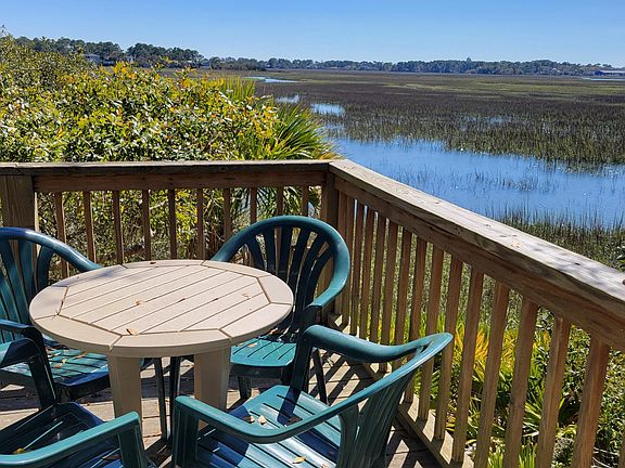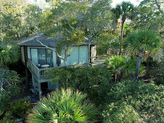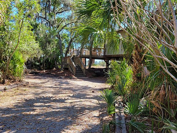 This 2 bedroom/2 bath tree house is nestled in amongst live oaks, saw palmettos, cabbage palms. This has an expansive view of the salt marsh. Sunsets are Spectacular! Views of Old House Creek. Natural Osprey nest sits on the edge of the marsh, so you can enjoy the nesting activity in Spring and Summer. The wrap around deck with built in seating is so pleasant and peaceful. Enjoy your morning coffee or your evening cocktail while being one with nature! Plenty of parking space at this tree house too! Short walk to Crabbing dock and short golf cart ride to Fiddlers Park. (Interior photos coming soon)