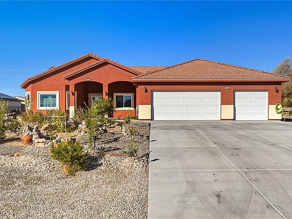 Gorgeous custom home with breathtaking mountain views and no HOA! This stunning 3-bedroom, 2-bath residence sits on almost a half acre of land, offering privacy, space, and RV parking. The open-concept floor plan features rich hardwood floors, vaulted ceilings, and large windows that fill the home with natural light. The gourmet kitchen is perfect for entertaining, complete with granite countertops, custom cabinetry, stainless steel appliances, and an oversized island with seating. The spacious primary suite offers a walk-in closet and spa-like bath with dual vanities and a large walk-in shower. Every inch of this home showcases high-end finishes and thoughtful design. Step outside to enjoy wide-open desert views, peaceful sunsets, and plenty of room to add a pool, workshop, or garden. The finished 3-car garage is insulated and ideal for extra storage or projects. Modern comfort, country serenity, and freedom from HOA rules — this property truly has it all!