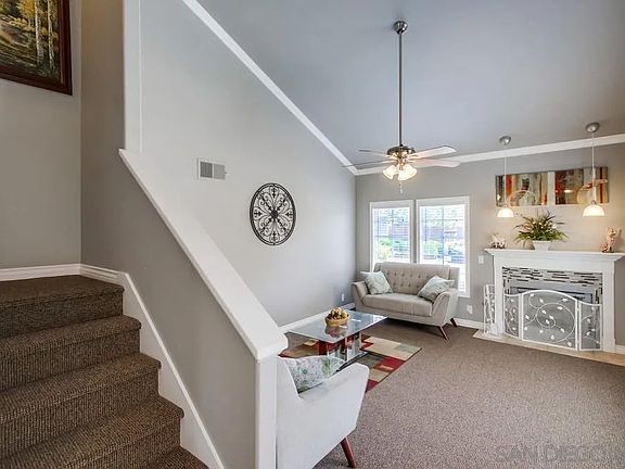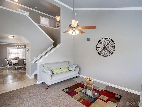 Welcome to this beautifully updated 4 bedroom 3 bathroom single family home located in the gated community of Friendly Village in El Cajon. All bedrooms are upstairs. Living room has vaulted ceiling with gas fireplace. Kitchen was updated just a couple years ago. Central heating and cooling. Extremely low HOA of $115.00/month. Perfect home for that growing home. Easy access to shopping, restaurants, highways, and schools. This turn key home is conveniently location just off the 8 highway. Crown Molding throughout home. The seller has pride in ownership.