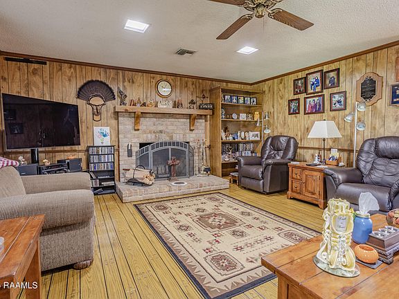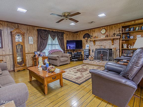 Welcome to this spacious 4-bedroom, 2-bathroom home situated on 1.36 acres along Highway 190 in Eunice! Offering 2,375 square feet of living space, this property provides the perfect combination of comfort and function. The home features a large living area with a brick fireplace, wood panel accents, and built-ins, along with a formal dining space and generously sized kitchen with abundant cabinetry. The primary suite includes dual vanities, while additional bedrooms offer plenty of room for family or guests. Outdoors, enjoy a covered patio overlooking the backyard and a sizable workshop with roll-up doors ideal for hobbies, storage, or equipment. The long driveway and multiple covered parking options provide convenience and ample space for vehicles. With its country feel yet easy access to town, this property is a rare find offering both privacy and practicality. Schedule your private showing today!