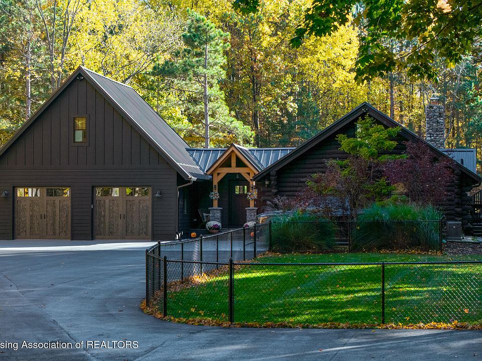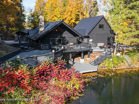 Spectacular 3-bedroom, 2-bath home situated on 3.72 acres with water frontage, mature trees, and serene natural beauty. A peaceful retreat just minutes from modern conveniences. Recently renovated kitchen features granite countertops, custom built-ins, and modern finishes. The fully finished walkout lower level offers a recreation room, cozy fireplace, and full bath. A new addition in 2023 showcases an oversized 2-car heated garage with Clopay doors, a stylish mudroom entrance, and a bonus room above offering numerous possibilities. Outdoor living is elevated with multi-tiered decking, stamped concrete walkways, a new asphalt driveway, and a large pole barn for storage or hobbies. Recent upgrades include a metal roof, furnace, water heater, city water hookup, and 20kW whole-home generator!