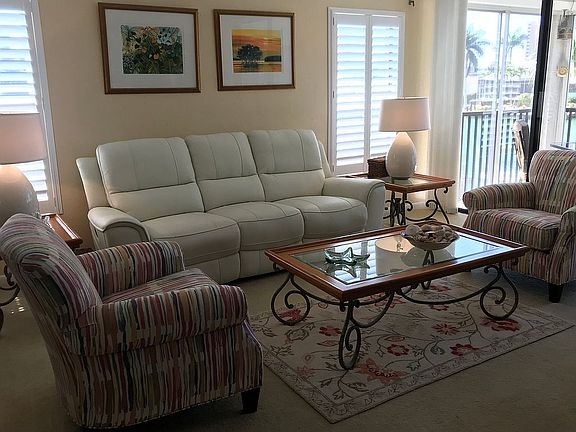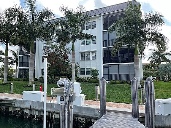 Unique second floor end unit with western exposure and incredible wide water view. New furniture and many updates. Hurricane shutters on all windows; dock with 14,000 lb. lift that will accommodate 30' boat. Direct boat access 5 minutes to Gulf and short walk to South Beach entrance.