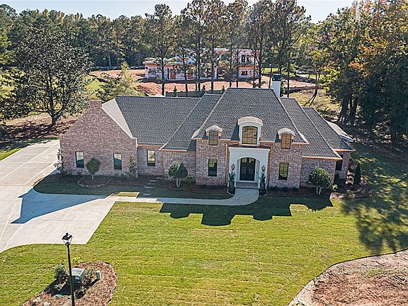 This one-of-a-kind, custom-built SINGLE LEVEL four-bedroom, four-bathroom home sits on a sprawling two-acre estate, where no expense has been spared. From rich hardwood floors and eight-foot solid core doors to elegant copper gutters, every detail reflects quality and craftsmanship. Upon entering through a grand iron double front door, you are welcomed into a foyer adorned with custom trim paneling. The expansive open floor plan reveals a living room flooded with natural light, soaring twelve-foot ceilings, built-in custom cabinetry, and a cozy fireplace. Just off the living room, you'll find a stunning study enclosed with a glass door and finished with exquisite custom trim. The gourmet kitchen is a chef’s dream, featuring Kirchler custom cabinets, luxurious quartzite countertops, a hidden walk-in pantry, a charming breakfast nook, and a $45,000 Wolf and Subzero appliance package. The spacious master suite boasts ample natural light, his-and-hers custom closets with built-ins, and a luxurious bathroom complete with a large walk-in shower, soaking tub, and a double vanity with knee space—all topped with elegant marble. Each of the three additional bedrooms features en-suite bathrooms and custom closets, providing ample privacy and storage. The versatile main level includes a generous flex room or bonus space with its own closet, perfect for a home office, gym, or playroom. The laundry room offers a large countertop with a sink and custom cabinetry for convenience. Step outside to a stunning back porch that promises relaxation and entertainment. It features a tongue-and-groove wood ceiling, wood-burning fireplace, in-ceiling speaker system, and a fully outfitted grilling area with granite countertops, a gas grill, sink, and beverage refrigerator—an outdoor oasis you'll never want to leave. Additional Features: Large 24.5 ft x 38.5 ft, 3 car garage ,Spray foam insulation, up lighting throughout the yard, lots of auxiliary parking.