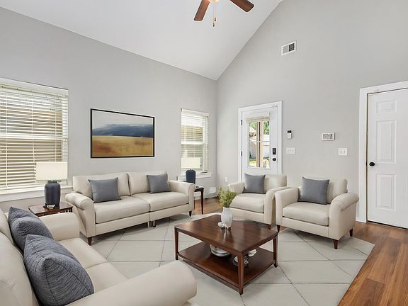 Step into a life of luxury within this newly renovated, single-story home boasting a freshly painted interior with brand new flooring and modern updates throughout! Soaring cathedral ceilings create an airy atmosphere guaranteed to create a grand first impression when you first step inside. Flooded with natural light, the open layout seamless connects the living, dining, and kitchen area for effortless entertaining. This kitchen is a chef’s dream, boasting a center island perfect for meal prep. A pantry offers storage space, complimented by rich cabinetry adding a touch of sophistication. Recessed lighting illuminates the area, ensuring a bright and welcoming atmosphere. The primary bedroom is a tranquil retreat with its spacious walk-in closet and dual sink vanity providing convenience within its private bath. Relax, unwind, and embrace outdoor living from the covered patio rain or shine. Blending contemporary elegance with timeless charm, end your search here!