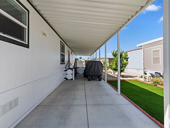 FARMHOUSE CHIC WITH ALL THE BELLS AND WHISTLES! BEAUTIFUL 2022 HOME WITH 2 BEDROOMS AND A LARGE BONUS ROOM WHICH CAN BE USED AS A DEN/OFFICE OR BEDROOM (NO CLOSET). THE HOME HAS LUXURY VINYL PLANK FLOORING AND NEW FIXTURES. BEDROOMS INCLUDE CEILING FANS AND CARPET. THE NATURAL LIGHT FILLED MASTER BEDROOM HAS AN EN SUITE WITH A DOUBLE SINK VANITY, WALK-IN SHOWER AND LARGE WALK-IN CLOSET. THE UPGRADED KITCHEN HAS UNDERLIT CABINETS, LARGE BLACK ONYX FARMHOUSE SINK, PANTRY WITH ETCHED GLASS DOOR, STAINLESS STEEL APPLIANCES AND RECESSED LIGHTS. SPECTACULAR SCENIC MOUNTAIN VIEWS CAN BE SEEN FROM THE KITCHEN WINDOWS. A LARGE INSIDE LAUNDRY ROOM WITH LIKE NEW WASHER AND DRYER ARE INCLUDED. BARN DOORS ARE ALSO FEATURED IN THE HALL BATH AND GUEST BEDROOM. THE EXTERIOR OF THE HOME HAS A COVERED FRONT PORCH AND A SIDE COVERED CONCRETE DECK FOR ENJOYING SUMMER EVENINGS IN YOUR ROCKING CHAIR. A LARGE SHED FOR STORAGE AND AN ENCLOSED AREA PERFECT FOR PETS IS ALSO ON THE PROPERTY. THE PARK'S AMENITIES INCLUDE POOL, SPA, FITNESS ROOM, BILLIARD ROOM AND CLUBHOUSE. THIS IS A SAFE AND FRIENDLY GATED COMMUNITY NEAR SHOPS, RESTAURANTS AND CASINO.