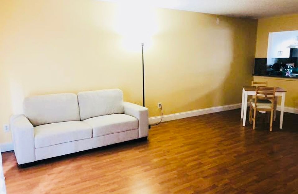Screened balconyPlenty guest parkingSafe in walk-in closetClean open kitchenBrand new fridgeAll laminate wood floors