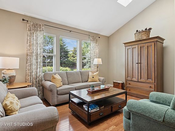 This beautifully maintained townhome in sought-after Windermere offers rare first-floor living with uninterrupted nature views from every rear-facing window. Backing to permanent open space-you'll never have neighbors behind you, just peaceful vistas of mature trees and greenery. Step inside the foyer and you immediately notice the gleaming hard wood floors and the dramatic vaulted-ceiling family room that opens to the perfect kitchen with maple cabinetry and natural stone countertops. Enjoy the views while you dine in the eat-in area that opens to a charming patio-great for relaxing. The main-floor primary suite also features vaulted ceilings, a walk-in closet, and an updated bath with new vanity. A second bedroom/den, powder room, and laundry/mudroom complete the main level. Upstairs, guests or family will appreciate a private bedroom suite with its own full bath and generous closet space. The deep-pour basement offers room to expand or abundant storage. Relax while knowing the big items have been taken care of... NEW FURNACE AND AC, NEW ROOF, NEW WATER HEATER and EXTERIOR PAINT! Easy living with no more shoveling or lawn maintenance! Comfort, space, and views-this home checks all the boxes!