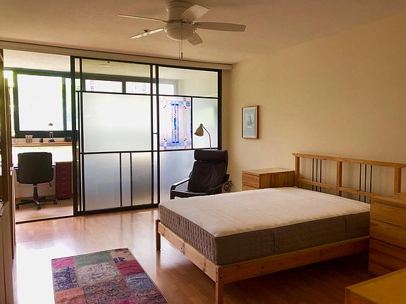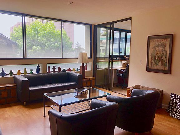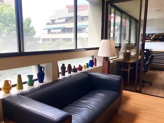 Good opportunity to live in this large furnished apartment in the safest corner of downtown. Furnished or unfurnished. A great apt to share with separated bedrooms, baths. Pergo floors throughout. Renovated open-concept kitchen with granite counter tops, lots of storage, pantry, European tile floor, dishwasher, microwave, toaster oven. Two large bedrooms, each with their own bathroom and ceiling fans. A/C too. The master has a walk-in closet and adjoining office porch . Large living room with leather furniture, lots of storage, and ceiling fan. Off ice has view of water cascade below. Secure, designated parking.with two side by side spaces included. Building has huge pool, sauna, gym, 24 hour concierge, barbecue grills, and a backyard green space which is the largest in downtown. One block to the Music Center, Disney Hall, and the Broad. 5 minutes to the Colburn School of Music, MOCA, Grand Park. Direct TV, water and trash included in rent. Small well behaved pet OK. 12 month lease. Friendly, respectful, smaller condo building. VERY easy freeway and transportation access. Renter pays electricity. Direct TV/water pd. by owner