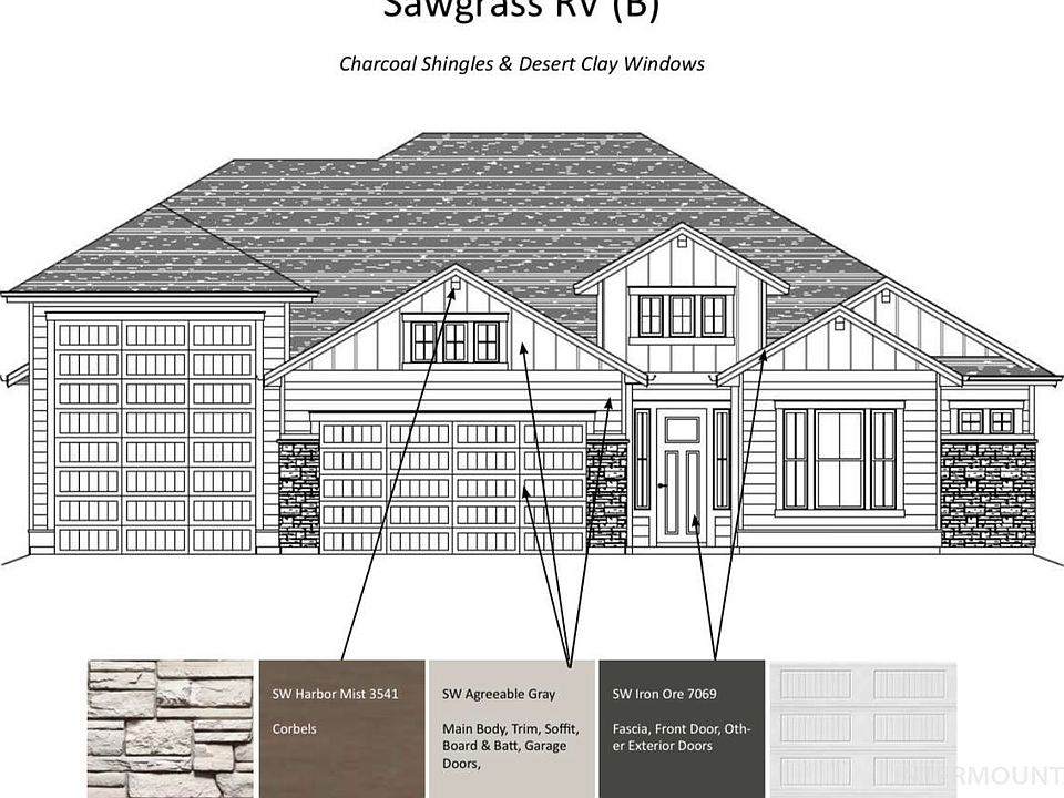 Tresidio Homes has a brand new floorplan! Welcome to the Sawgrass RV! This stunning single story plan has ample room for everyone with 4 bedrooms and 3.5 bathrooms, and an incredible 43' deep RV bay that will be the envy of the neighborhood! The great room will feature an eye-catching 12' tray ceiling complete with beams, and a stunning center stone fireplace with surrounding built ins. You'll love cooking (or ordering in, we don't judge!) in the kitchen, featuring Bosch appliances, two-tone cabinetry up to the ceiling, and beautiful marbled quartz countertops. The primary suite in this floorplan is a true retreat - you'll enjoy unwinding in your free standing soaker tub, and singing along to your favorite songs in your tile surround shower. This stunning home is located in Oakwood Estates, just minutes from freeway access, shopping & restaurants at the village, and just a 20 min drive to a BSU football game! Come experience the peace and beauty of this community, and see why this home should be yours!