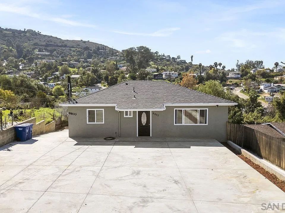 Check out this amazing 2 unit home in Lakeside. Sitting on half an acre of land, the property is packed with potential. The main house is ready to move in featuring 3 spacious bedrooms and 2 bathrooms. The side unit is a fully remodeled 1 bed 1 bath, currently rented to a reliable tenant. The property has separate electric meters, making it easier to manage utilities. Front driveway has plenty of space, fits up to 7 cars! The property boasts breathtaking views and endless potential. Live in the main house and let the rental income help cover a significant portion of your mortgage, or explore the development possibilities with the large lot. Whether you're an investor or a homeowner looking for a smart way to buy in San Diego, this duplex offers versatility, income, and potential! Don't miss out on this rare opportunity!