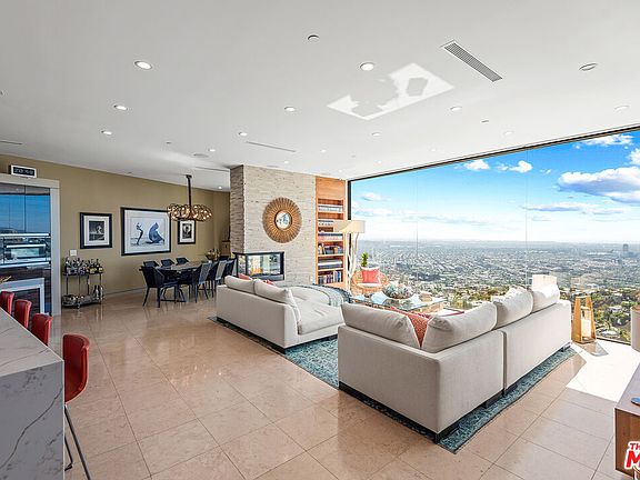 Explosive views overlooking all of Los Angeles from Downtown to the ocean & beyond. This Modern Contemporary with an open floor plan offers 5 bedrooms + 7 baths with skyline views from every room. Stone & hardwood floors, high ceilings, a high tech Kitchen features lacquered wood cabinetry and Miele appliances. The Media/Lounge features surround sound, wet bar, fireplace and walk-in chilled Wine Room. Each bedroom is en suite and the primary suite offers a spacious luxurious private space & outdoor terrace patios. Gorgeous, large pool appears to float in midair, an outdoor grill and endless options for outdoor dining. Ample 5 car parking plus an Elevator makes for easy convenience.