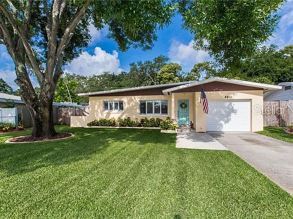 Move-in ready 2 bedroom, 2 bath home with freshly landscaped front and back yards with mature trees. This home was renovated in 2015 with new kitchen including stainless appliances, HVAC and roof. Bathrooms were also upgraded in 2015 as well as the windows which all have plantation shutters. This beautiful ranch home also includes an inside laundry room with washer and dryer. A Nest Bluetooth thermostat and Ring doorbell are both installed for access while away from home. Want to relax after a hard days work? Then enjoy the back patio under stars. Seminole has seen a huge surge in younger families coming to the area. The community has grown with lots of shopping at the completely new Seminole City Center just 1 mile away. Also, Walsingham Park and the Gulf Coast beaches and a boat launch all just a short car ride away. Enjoy biking? Try the Pinellas Trail also just around the corner. This home has been meticulously maintained and is a true must see. Schedule your showing today as this listing won't last long!