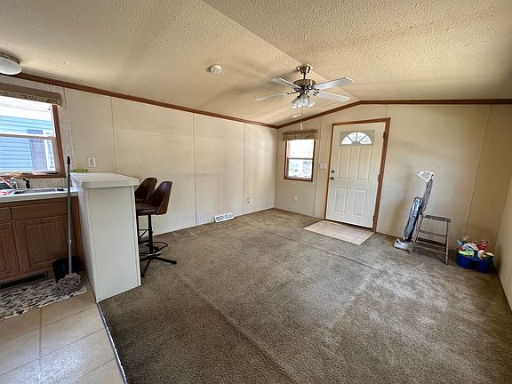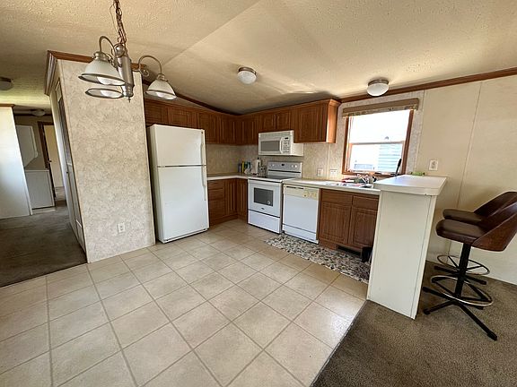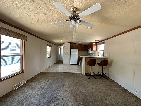 Newer 2 bedroom, 1 bath mobile home offers a nice, open floor plan with vaulted ceilings; Kitchen with oak cabinets & all appliances; In-unit laundry; New maintenance free deck. Great location in the back of the park. Sold as is.