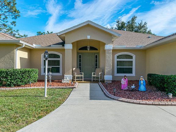 Absolutely stunning 3 bedroom, 3 bath home with a large 2.5 car garage situated in a wonderful family friendly neighborhood just minutes to the Rainbow River! With over 2500 sf of living space, this home has been updated with: New Stainless appliances, new paint; wood flooring; light fixtures; ceiling fan; faucets in kitchen & bathroom; new bathroom mirrors & raised toilets & sinks; new red rock landscaping stones; new gutters & gutter guards; generator; and so much more! The spacious open floor plan features: 2 master suites; formal dining room; living room; family room; eat-in kitchen w/breakfast bar & all appliances; inside laundry; + beautiful screen enclosed porch overlooking the backyard! Homes sits on 1.05 acres and has private access to the river w/picnic pavilion, river access. The community center features: tennis, pickle ball, horseshoes, bocce, picnic area, pool, billiards, ping pong, darts and lots of meeting space plus a disc golf course and a walking trail on the old golf course.