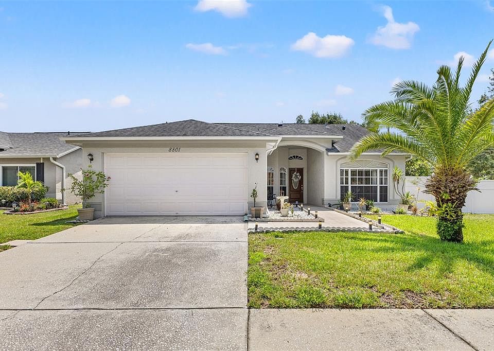 Pride in ownership! Don't miss your opportunity to own this beautifully well maintained-one owner, 4 bedrooms, 2 bath, 2 car garage home in the highly desirable golf community Oakridge of Countyway. Upon entry, you'll notice the newly painted interior that gives way to the main living room. With plenty of entertaining space, the kitchen has been completely updated to a modern, fresh feel with gorgeous QUARTZ countertops and NEW stainless steel appliances. The split floor plan, allows for the spacious primary room and bathroom to be located on the opposite side of the house. It doesn't stop there, the spare bathroom has also been updated. Enjoy the freshness of clean tile throughout the home, no carpets. Savor your morning coffee on the fully screened-in, with slider windows FLORIDA room, complete with ceiling fans. An additional, open air covered back patio gives the essence of never ending entertainment space. FULLY FENCED, on a corner lot, the new home owner will get to enjoy the mature fruit bearing trees in your own back yard. Starfruit tree, fig tree, lime tree, & mango! Additionally, equipped with a shed for extra storage, and a in home water softener! Countryway is a golf course community that also features a park with areas for basketball, volleyball, tennis courts and baseball field, plus a dog park. Close to the upper Tampa bay bike trail, Tampa Bay Skating Academy, and the YMCA. Don't hesitate to schedule your own personal showing of this lovely property today!